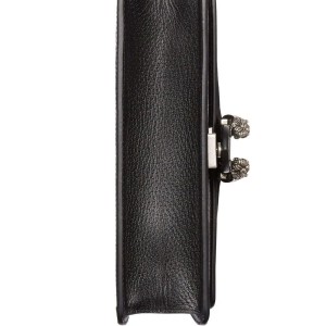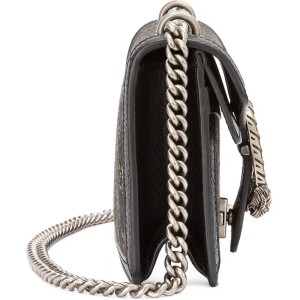 Combining key elements of GG rich DNA. this small Dionysus GG shoulder bag features the signature GG jacquard repeated alongside the brand’s much-loved tiger head motif in the front plaque. In keeping with the timeless design. the bag is crafted in a monochrome colour palette elevated by chunky antique silver-tone hardware.