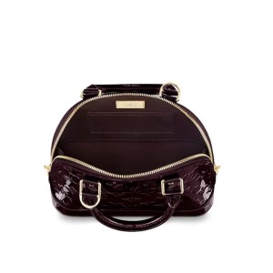 The Alma BB handbag traces its pedigree to the Art Deco original, introduced in 1934. Fashioned from Monogram Vernis embossed patent leather with signature details – engraved LV padlock, hand-stitched Toron handles, chic key bell – this glossy, compact bag brings a touch of glamour to any look. The removable strap can be worn cross-body, for an on-trend allure.