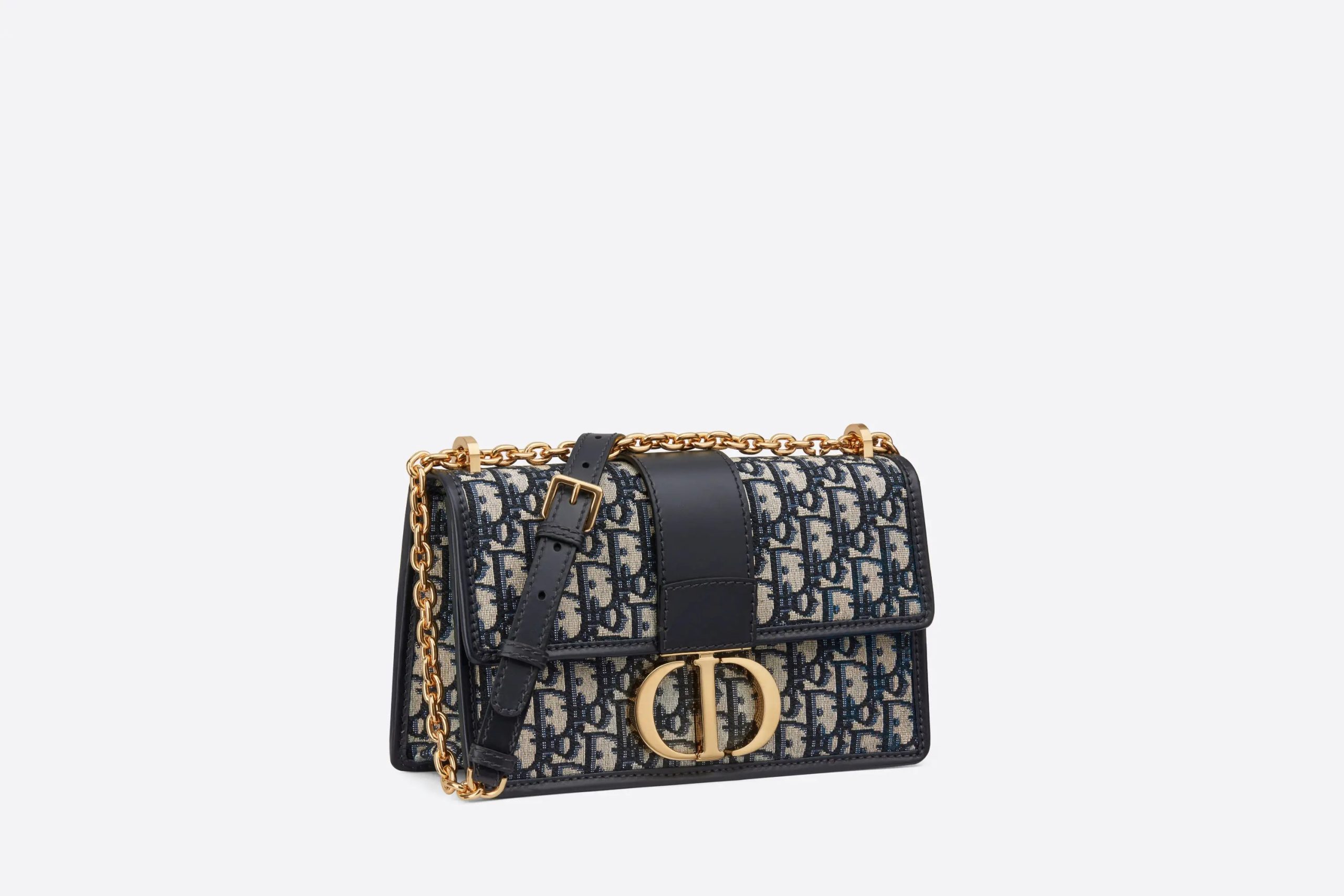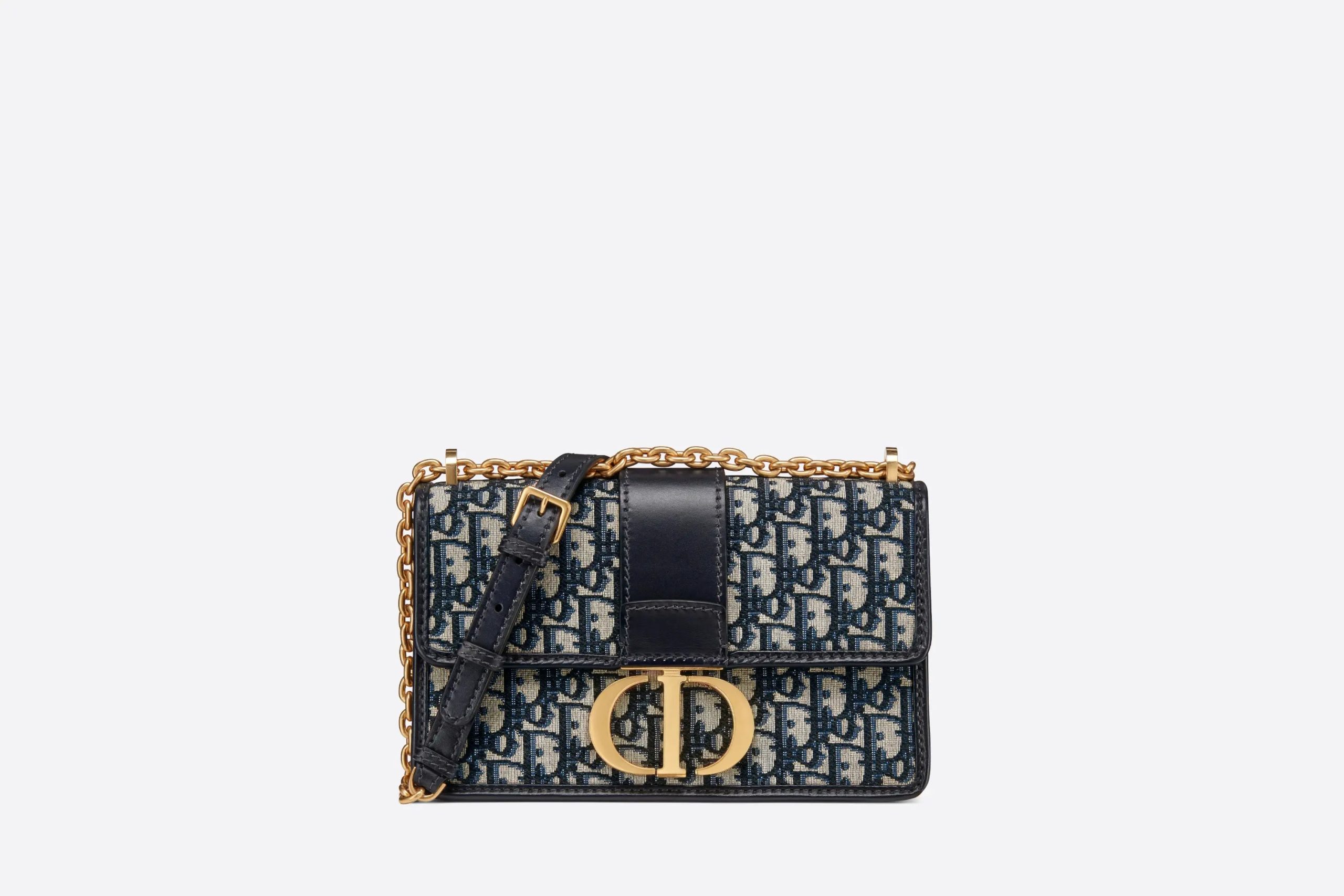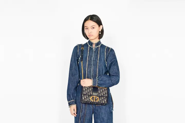 The 30 Montaigne line, inspired by the hallmark address, offers essential pieces that embody the House’s iconic codes. The handbag is crafted in blue jacquard and highlights the House’s iconic Oblique motif for an elegant and modern design. The flap has an antique gold-finish metal ‘CD’ clasp, inspired by the seal of a Christian perfume bottle. Other details, like the embossed ’30 MONTAIGNE’ signature at the back highlight the streamlined design. The bag features a chain that allows it to be carried by hand, worn over the shoulder or crossbody.