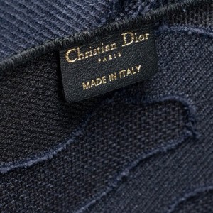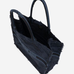 - The CD Book Tote is a much-beloved carryall and on-trend creation by Maria Grazia Chiuri. Coloured in dark blue. this everyday piece features a fully embroidered and hand-fringed Camouflage motif. topped with the iconic ‘Christian CD’ signature. The roomy interior offers enough space for your MacBook. cosmetic pouch. a bottle of water and more. This 2019 bag comes in excellent unworn condition and shows no marks or flaws.