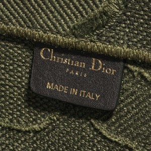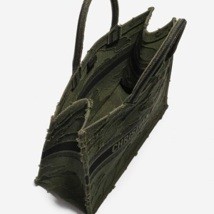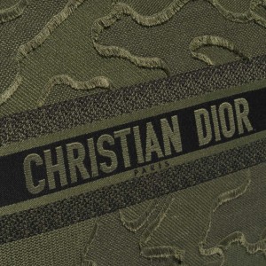 - The CD Book Tote is a much-beloved carry-all and on-trend creation by Maria Grazia Chiuri. Coloured in dark green. this everyday piece features a fully embroidered and hand-fringed Camouflage motif. topped with the iconic ‘Christian CD’ signature. The roomy interior offers enough space for your MacBook. cosmetic pouch. a bottle of water and more. This 2019 bag comes in like-unworn condition and shows no marks or flaws.