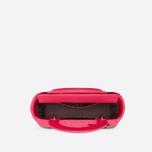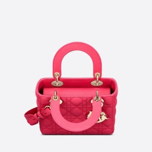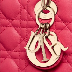 The Lady Dior My ABCDior bag epitomizes Dior’s vision of elegance and beauty. Sleek and refined, the timeless style is crafted in bright pink lambskin with Cannage stitching, creating the instantly recognizable quilted texture. Pale gold-finish metal ‘D.I.O.R.’ charms offer an elegant allure. Featuring a shoulder strap that can be personalized with badges, the small, unique design may be carried by hand or worn crossbody.