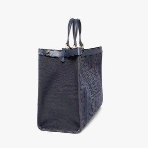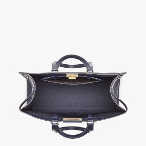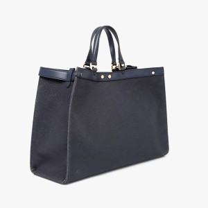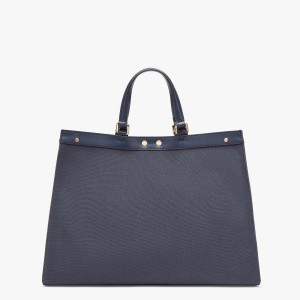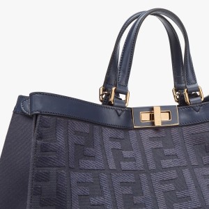 Medium Peekaboo X-Tote bag made of dark blue canvas with a tone on tone raised embroidery FF motif. Embellished with dark blue leather and decorated with the iconic twist lock.Unlined interior featuring a pocket with a snap closure and gold-finish metalware.Completed by two short handles for carrying by hand and two long handles for wearing over the shoulder.Made in Italy