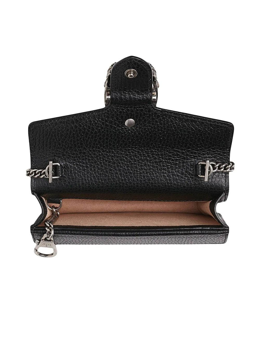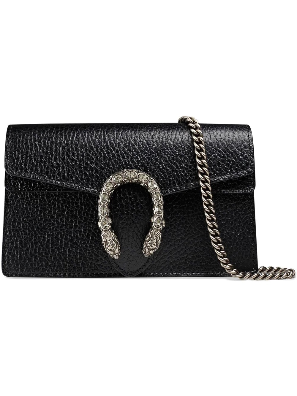 GG ‘Dionysus’ shoulder bag is among the brand’s most covetable styles. and it’s easy to see why. Crafted in Italy from smooth leather. it’s punctuated with a curved clasp closure shaped into a tiger’s head – a reference to the Greek god Dionysus. who in myth is said to have crossed the river Tigris on a tiger sent to him by Zeus. Can’t beat a classic. Featuring a chain shoulder strap and clasp fastening. POSITIVELY CONSCIOUS: This product contains leather made through an alternative metal or chrome free tanning process. reducing the environmental footprint compared to traditional methods.
