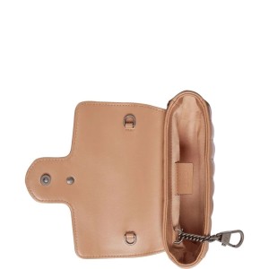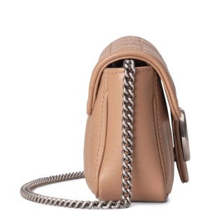 The GG Aria SS22 collection sees a reinterpretation of some of the House’s most iconic styles. Here. the super mini version of the classic GG Marmont bag combines the brand’s penchant for whimsical pieces with a new take on the signature matelass?? effect. seen on this bag with a mix of vertical and diagonal quilted panels. A household staple since the 70s. the double G buckle features in an antique silver-toned hue.