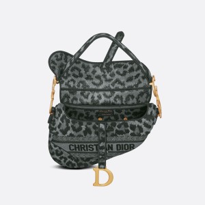 Maria Grazia Chiuri brings a fresh update to the iconic Saddle bag. The design is fully embroidered with the gray Mizza motif. inspired by a leopard motif from the House archives. The legendary style features a Saddle flap with a magnetic ‘D’ stirrup clasp and boasts an antique gold-finish metal ‘CD’ signature on each side of the handle. The bag can be carried by hand or worn over the shoulder and may be customized with different shoulder straps.