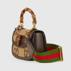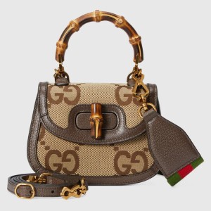 Instantly recognizable emblems of the brand, logos enrich designs in new and unexpected ways. Behind every logo lies the tradition and value of the House, an everlasting medium one can wear again and again. Following the idea of constant change and experimentation, different iterations of the logo have been presented each collection. The jumbo GG, a new, maximalist version of the historic monogram, animates a selection of ready-to-wear and accessories for the Aria collection like this mini bag.