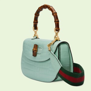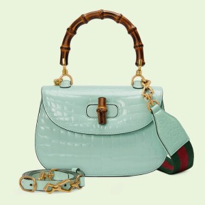 ‘Nojum’, an Arabic word meaning ‘stars’ in English, represents the light shining on a starry night. Presented as part of the Gucci Love Parade collection, Gucci Nojum presents an elegant range of signature styles designed in celebration of beautiful night skies, with metallics, sparkling details and delicate color palettes.The Bamboo 1947 appears here in luxurious blue crocodile leather.