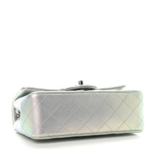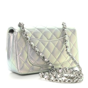 - This chic petite shoulder bag is crafted of diamond quilted luxurious shimmery calfskin leather in a light purple. The cross body bag features a long silver chain link leather threaded shoulder strap and front flap with a silver CC turn lock. The flap opens to an interior of matching leather with zipper and patch pockets.