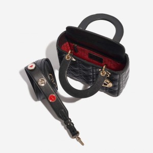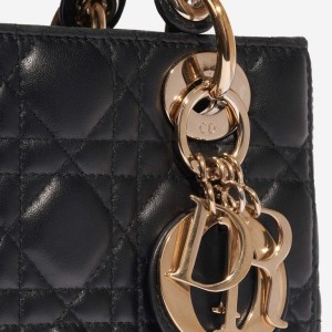 - A dainty Lady CD ideal to pack an evening’s essentials – your phone. cardholder. and lipstick. It has been crafted in 2017 in France from soft. black Lambskin and decorated with the iconic gold-tone charms. The bag arrives in good. pre-loved condition and shows some signs of wear on the corners and edges. Accessorize your party outfit with this go-to piece and attach the shoulder strap to go hands-free.