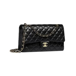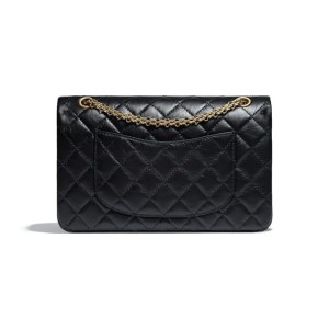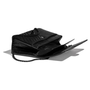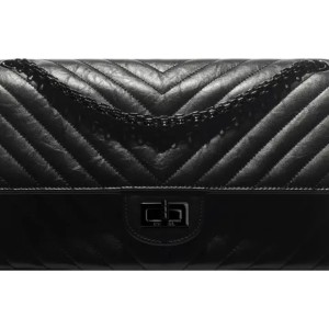 - This stylish shoulder bag is beautifully crafted of chevron-quilted aged calfskin leather in black. The bag features a polished black reissue chain shoulder strap and a mademoiselle turn lock on the flap. This opens to a matching black leather interior with zipper and patch pockets.