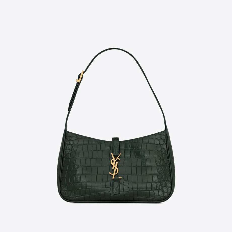 SAINT LAURENT MONOGRAM HOBO BAG FEATURING AN INTERLACED METAL YSL INITIALS HOOK CLOSURE AND AN ADJUSTABLE SHOULDER STRAP.