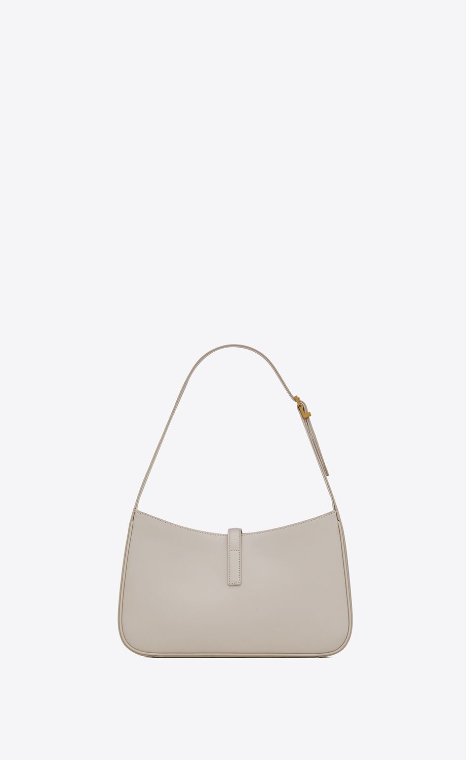 SAINT LAURENT MONOGRAM HOBO BAG WITH AN ADJUSTABLE STRAP AND TAB CLOSURE WITH METAL YSL HOOK.