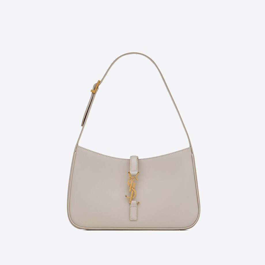 SAINT LAURENT MONOGRAM HOBO BAG WITH AN ADJUSTABLE STRAP AND TAB CLOSURE WITH METAL YSL HOOK.