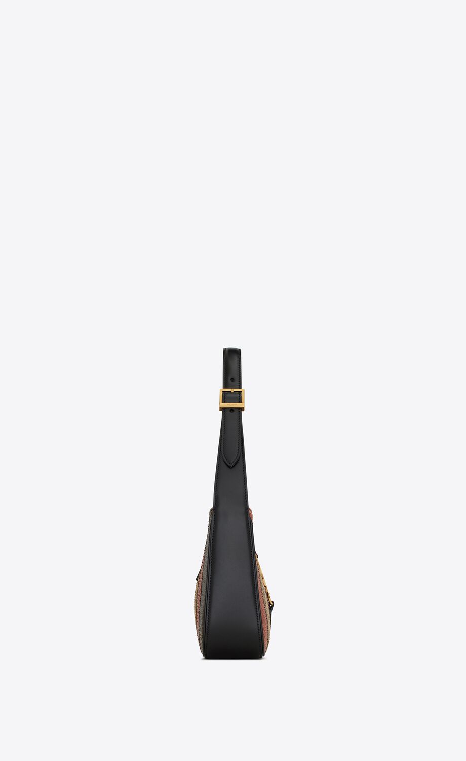 SAINT LAURENT MONOGRAM HOBO BAG FEATURING AN INTERLACED METAL YSL INITIALS HOOK CLOSURE AND AN ADJUSTABLE SHOULDER STRAP.