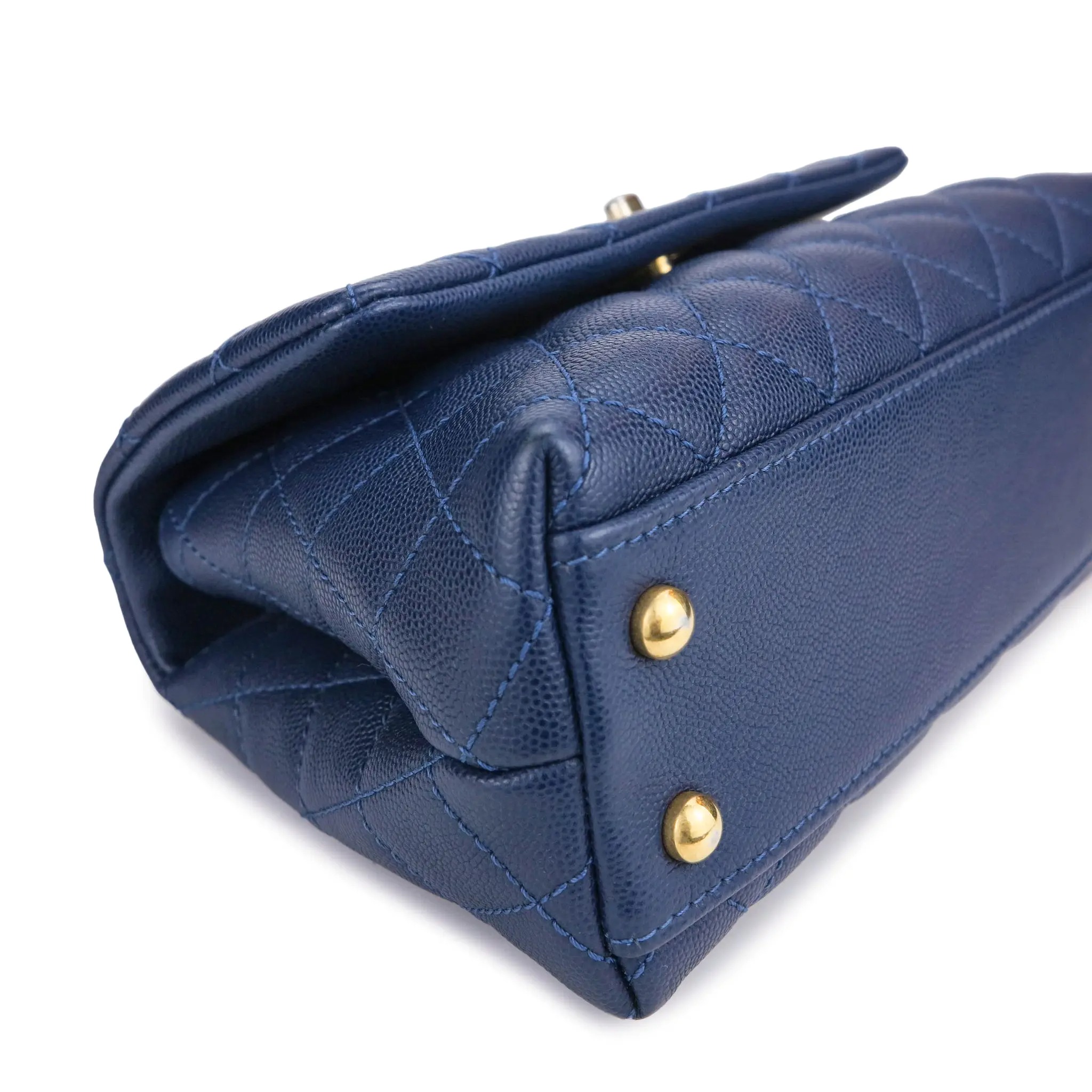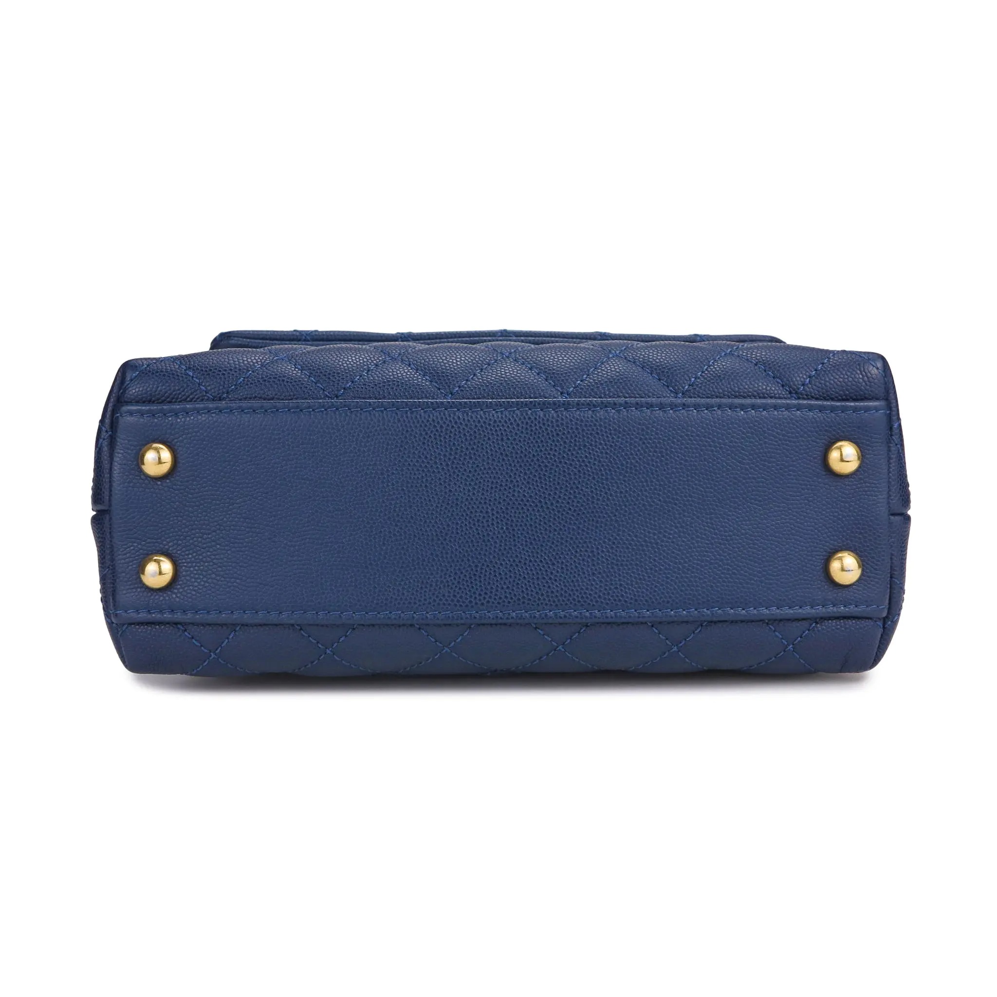 Lizard Mini Coco Handle Bag in Navy Caviar
