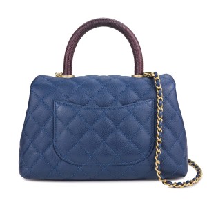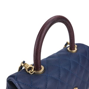 Lizard Mini Coco Handle Bag in Navy Caviar