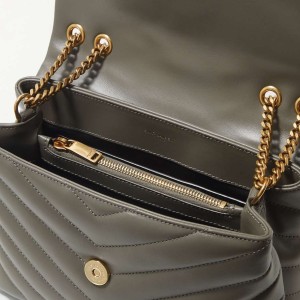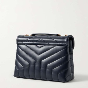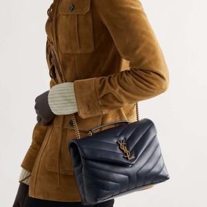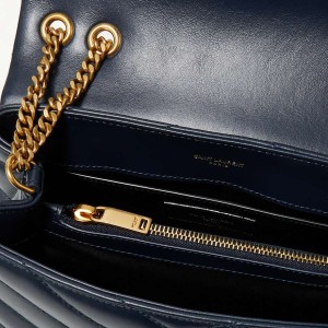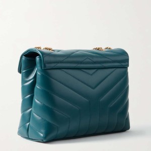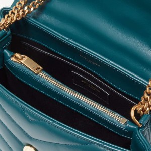 Originally created by graphic designer Adolphe Jean-Marie Mouron in 1962. SAINT LAURENT’s iconic monogram continues to be recognized as an assurance of quality and luxury. This quilted ‘Loulou’ bag has been made in Italy from smooth petrol leather detailed with signature chevron stitching. Though compact. it has a well-organized interior with two compartments. a zipped pocket and three card slots.