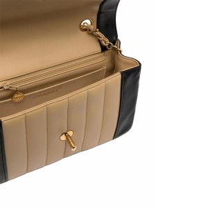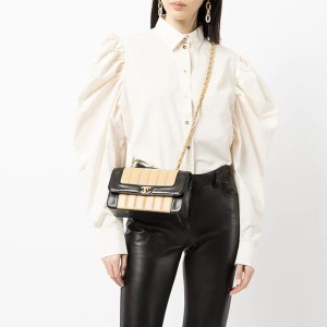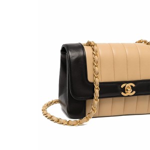 Named after signature Mademoiselle quilting. this shoulder bag from Pre-Owned is crafted from soft lambskin in beige and black hues and is finished with the iconic interlocking CC turn-lock in polished gold-tone hardware.
