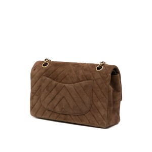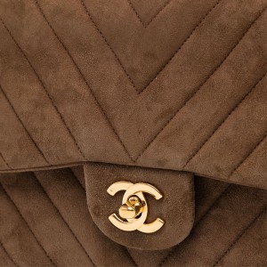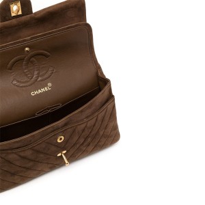 A timeless design from the Maison. Double Flap shoulder bag is considered the pinnacle of sophistication. Presented in the medium size. it’s crafted from chocolate brown Chevron-quilted suede and finished with refined gold-tone hardware.