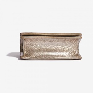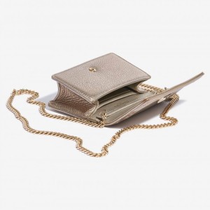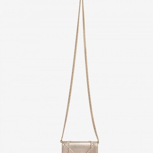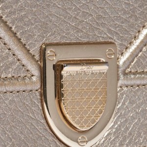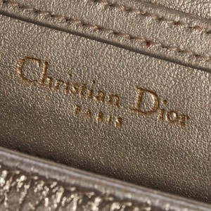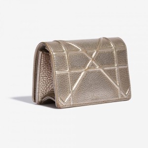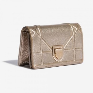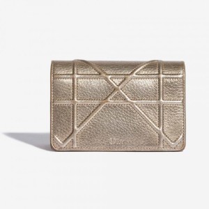 - A CDama Wallet on Chain clutch featured in champagne metallic calfskin with “Micro-cannage” motif. hardware in light gold-tone metal in pristine condition. The bag has a button closure and can be worn as a clutch as well as crossbody. It has a tiny scratch on the front top part as well as slightly worn corners. A true gem for a mini-bag collector.