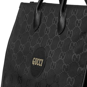 GG knows that travelling light means leaving behind a lighter footprint too. Crafted from ECONYL. a nylon fabric made with recycled yarn. and trimmed with metal-free leather. this GG Supreme tote bag is perfect for holding all of your essentials when you need a trusty hold-all. Go off the grid.