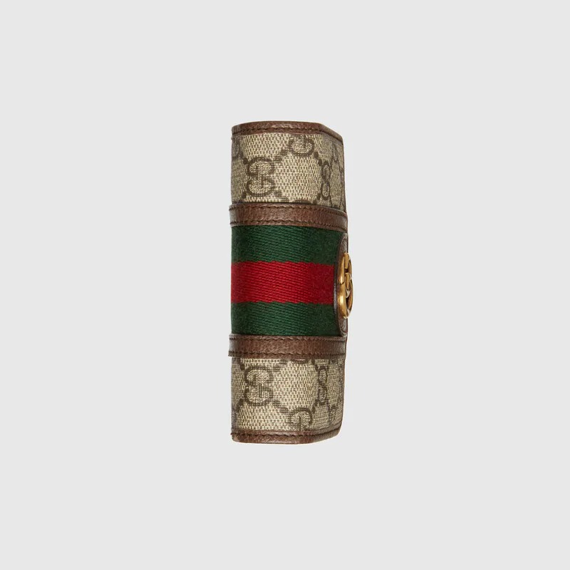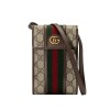 The Ophidia collection takes the shape of a new mini bag with a magnetic flap closure and a detachable shoulder strap with a snap button. First developed in the 1950s. the webbing stripe continues to pay homage to the brand’s roots and equestrian influences. inspired by the straps that secure the saddle to the horse’s back. Depicted in the most striking combination of green and red. the stripes run along the center of the GG canvas’ petite rectangular shape. This style can be used as a cell phone bag.