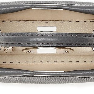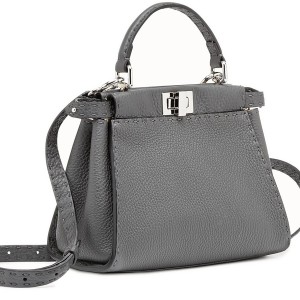 Iconic small Peekaboo bag made of pink Cuoio Romano leather. finished with hand stitching and embellished with the classic twist lock on both sides. Featuring a white leather lining with two compartments separated by a stiff partition. an inner zip pocket and palladium-finish metalware. The bag can be carried by hand or worn either on the shoulder or cross-body thanks to the handle and adjustable. detachable shoulderstrap.
