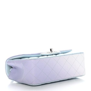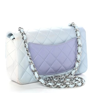 - This chic shoulder bag is crafted of diamond quilted lambskin leather in a blend of light blue, purple and white. The shoulder bag features a silver chain-link leather-threaded shoulder strap and a front flap with a silver classic CC turn-lock. This opens to reveal an inner flap and a light blue leather interior with zipper and patch pockets.