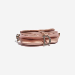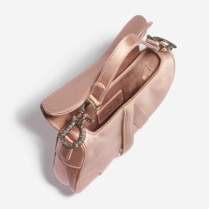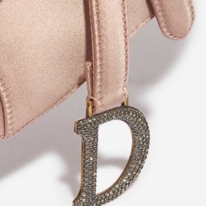 - Made from lustrous blush satin. this mini CD Saddle Bag is best suited for evening affairs. It features the oversized gold-coloured ‘CD’ elements and magnetic clasp. adorned with sparkling smoky crystals. Carry it over your shoulder or in your hand and pair it with festive attire for your next night out. The bag comes in very good condition and shows some signs of wear on the inside and outside.