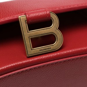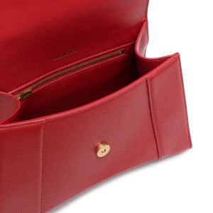 - A dark-red take on an iconic design, this Hourglass bag is presented here in a small-sized iteration. Constructed from pebbled leather, this version opens up to a compact interior that fits small belongings distinctively.