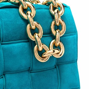 BV creates sophisticated designs through their use of impeccable construction and purposeful lack of branding. On this bag. the balance of chain-link detailing in gold-tone hardware and quilted interwoven detailing creates a contemporary yet timeless design.