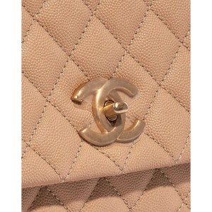 - A medium Timeless handle in beige pebble caviar leather with gold-tone hardware. The rounded top handle gives Chanel’s signature design a more structured and formal look, but you can dress it up and down effortlessly. It arrived in unworn condition. Carry it anywhere or use the interwoven chain strap as a crossbody look.