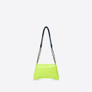 SKU: WOMEN'S DOWNTOWN SMALL SHOULDER BAG WITH CHAIN CROCODILE EMBOSSED IN YELLOW Category:
