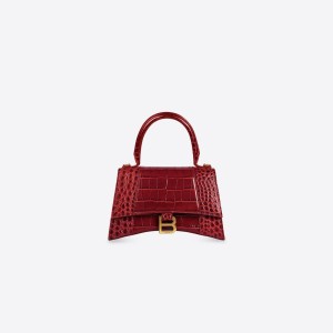 SKU: WOMEN'S HOURGLASS SMALL HANDBAG CROCODILE EMBOSSED IN DARK RED Category: