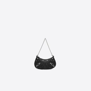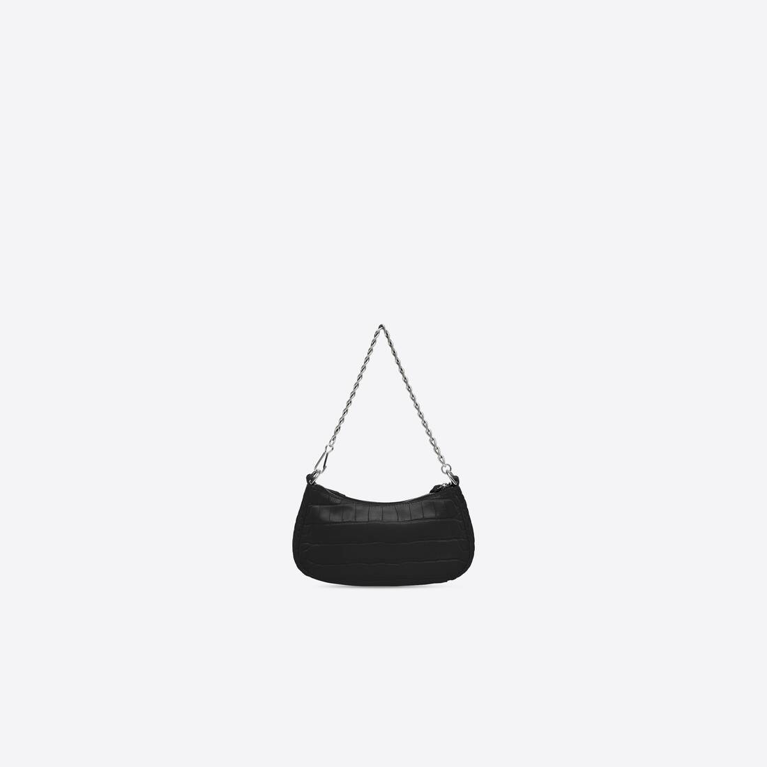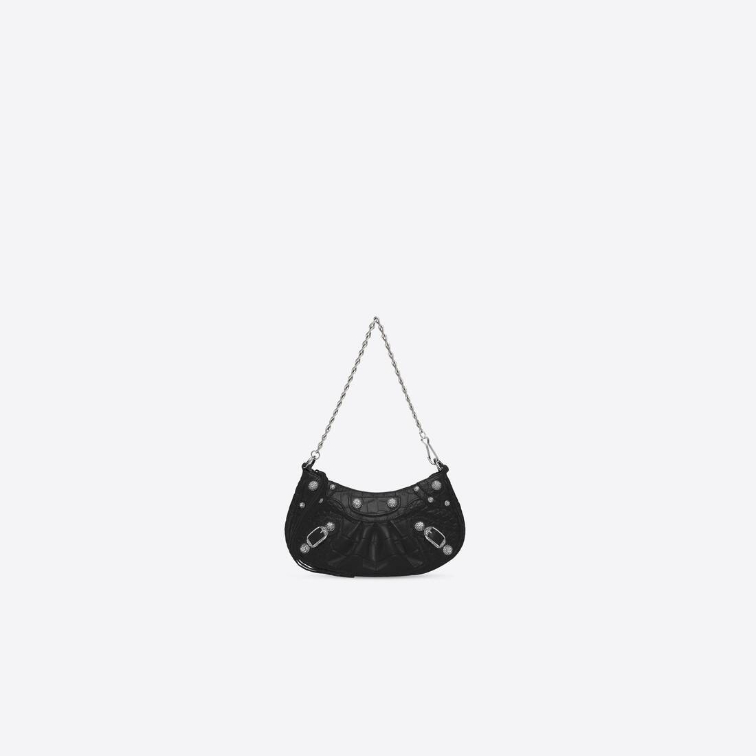 SKU: WOMEN'S LE CAGOLE MINI PURSE WITH CHAIN CROCODILE EMBOSSED WITH RHINESTONES IN BLACK Category: