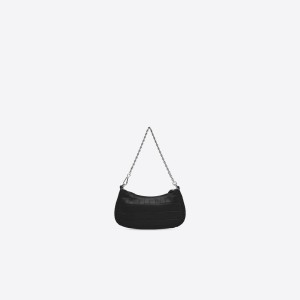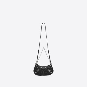 SKU: WOMEN'S LE CAGOLE MINI PURSE WITH CHAIN CROCODILE EMBOSSED WITH RHINESTONES IN BLACK Category: